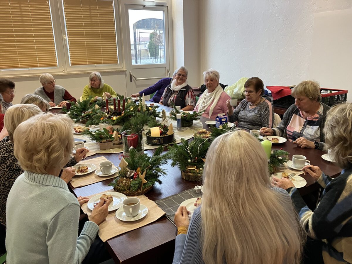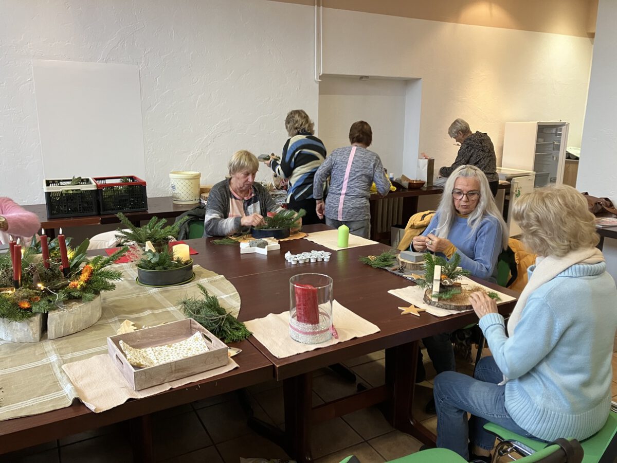 (awd) Schon bald beginnt die vorweihnachtliche Zeit. Wir schmücken unser Heim mit Adventsgestecken, Kerzen, Schwibbogen und vielen anderen mehr. In der dunklen Jahreszeit brauchen wir Licht und Wärme. Die Frauen des Heimatvereins trafen sich heute, um gemeinsam Gestecke anzufertigen und natürlich auch bei Kaffee und Kuchen zu plaudern. Viele schöne Ideen wurden verwirklicht.