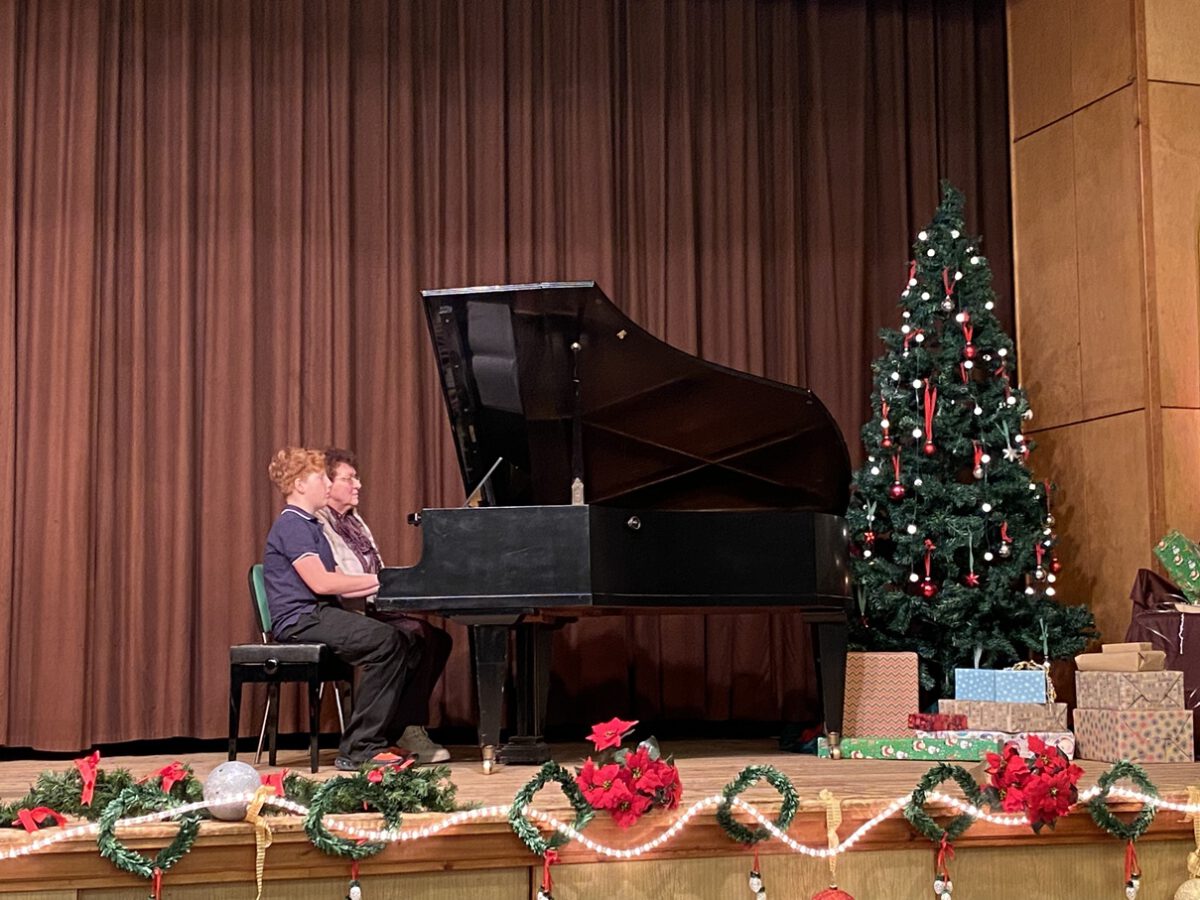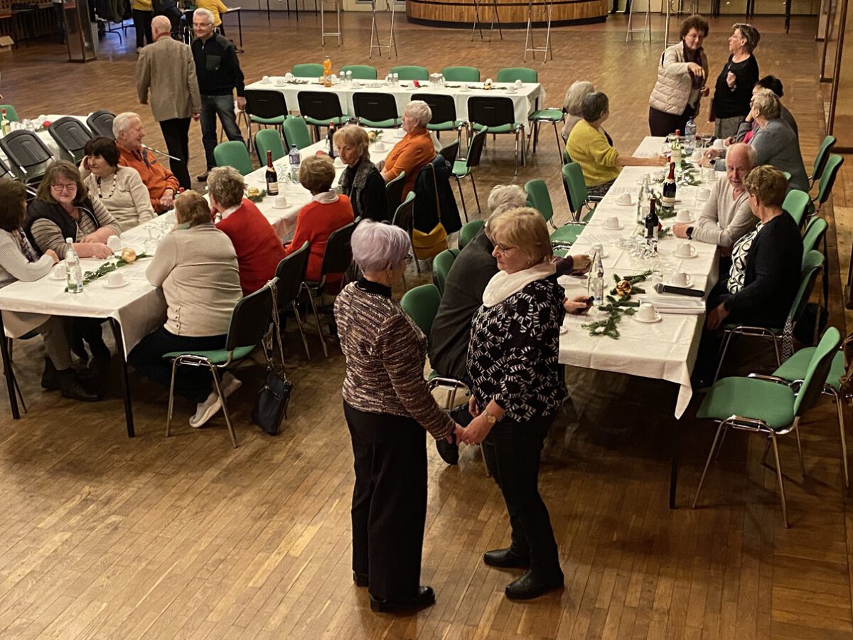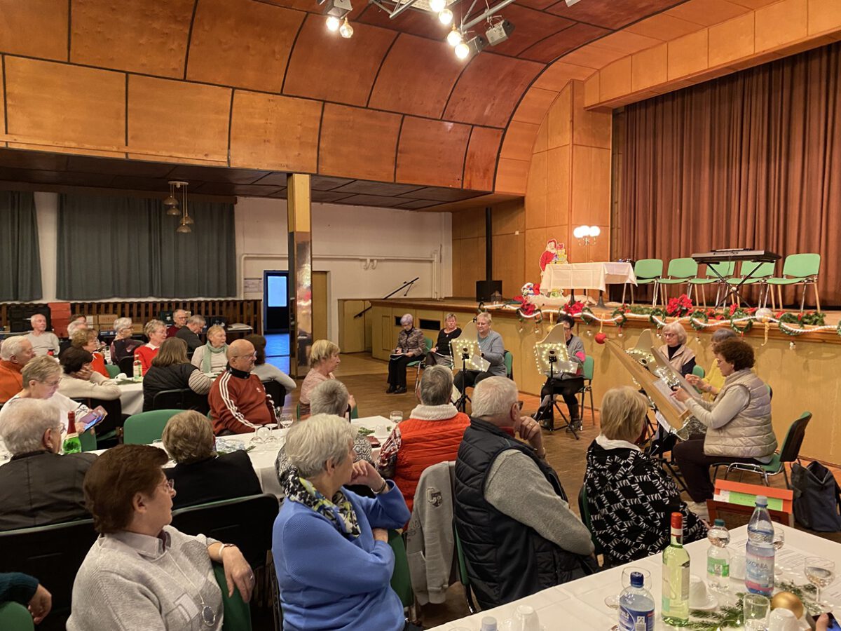 Bereits am Vortag hatten fleißige Helfer den Saal eingeräumt und am Tag der Feier die Tische dekoriert. Für die musikalische Einstimmung auf den vorweihnachtlichen Nachmittag sorgte Ehrenmitglied Rainer Krause am Flügel.
