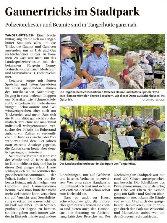 Volksstimme Stendal vom 20. August 2023 – Pavillonkonzert im Tangerhütter Park
